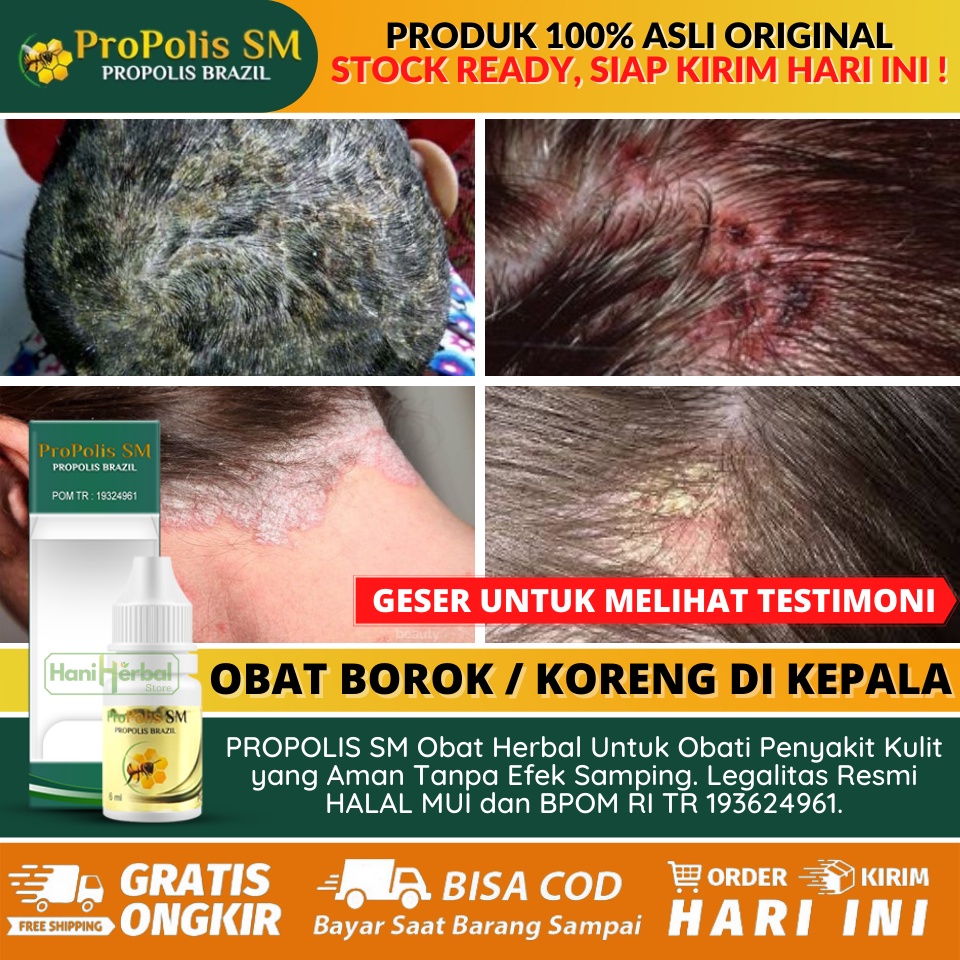 1 OBAT SALEP EKSIM, GATEL, KORENG, BOROK KARENA BAKTERI, BOROK DI SELANGKANGAN, BOROK DI KEPALA, OBAT BUDUG OLES ALAMI, OBAT BUDUG DI KAKI, OBAT PENGHILANG BEKAS KORENG - PROPOLIS SM BRAZIL 6 ML